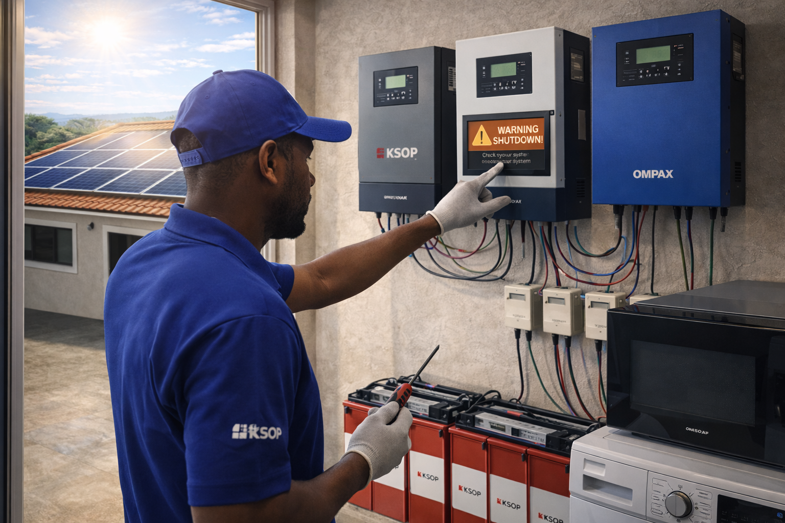 Even with solar panels, battery health plays a critical role. Weak or aging batteries may fail to supply stable voltage, causing inverter shutdown.