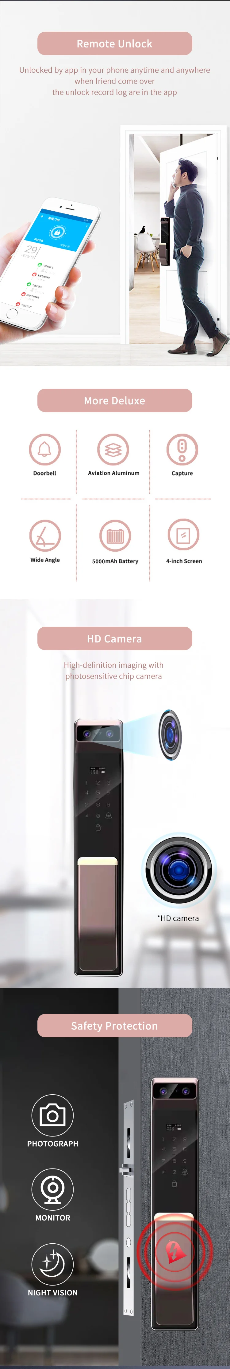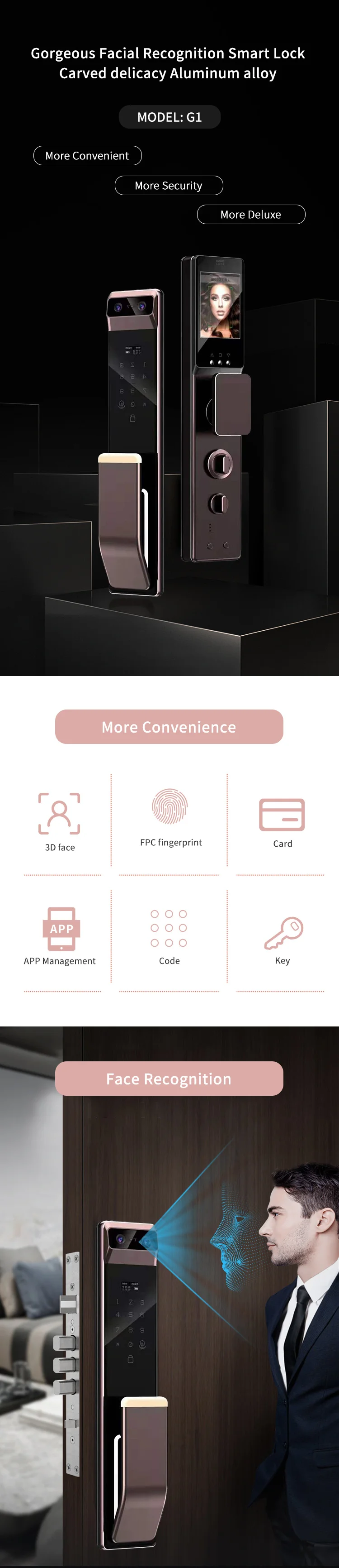 Face Recognition Smart Digital Door Lock – New design Hot sale Smart Door Lock fingerprint metal Usmart APP face recognition lock smart digital lock for home and offices