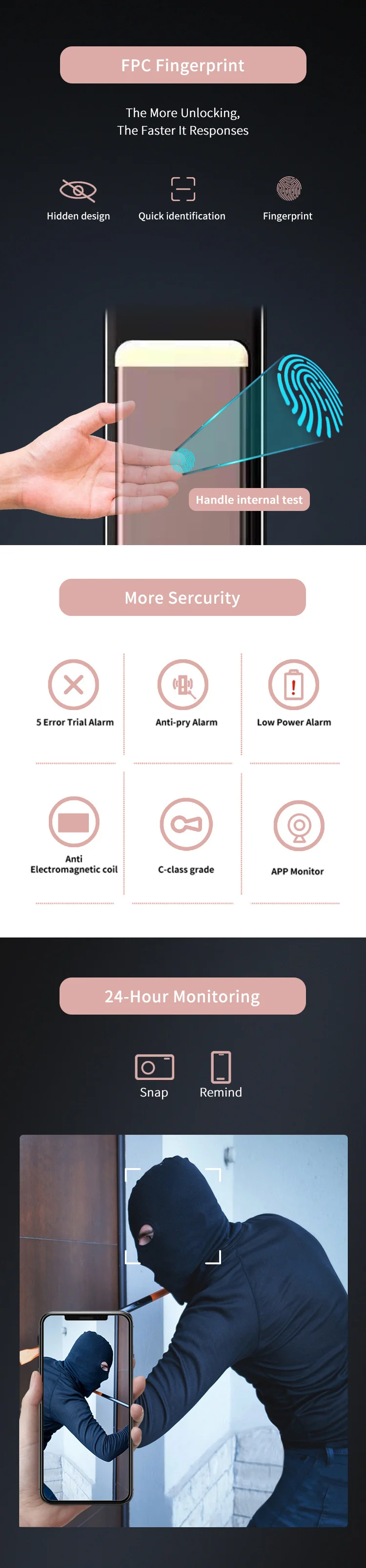 Face, Card, Fingerprint, Password, Mechanical key, APP Management ,Combination unlock