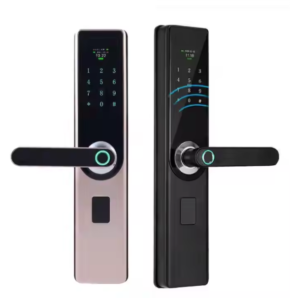 The Finger Touch Smart Door Lock offers advanced security with a semi-automatic fingerprint system, anti-peep password protection, and digital code access. Designed for wooden doors, this sleek lock ensures convenience and safety with its fingerprint recognition technology, making it easy to secure your home or office with just a touch.